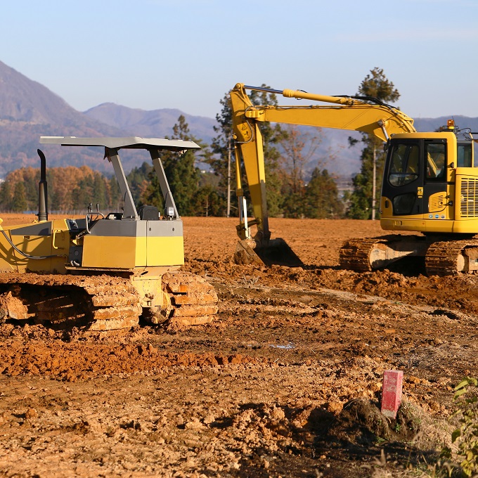 その後、雑草の除草作業を行い、土地を重機で整地します。