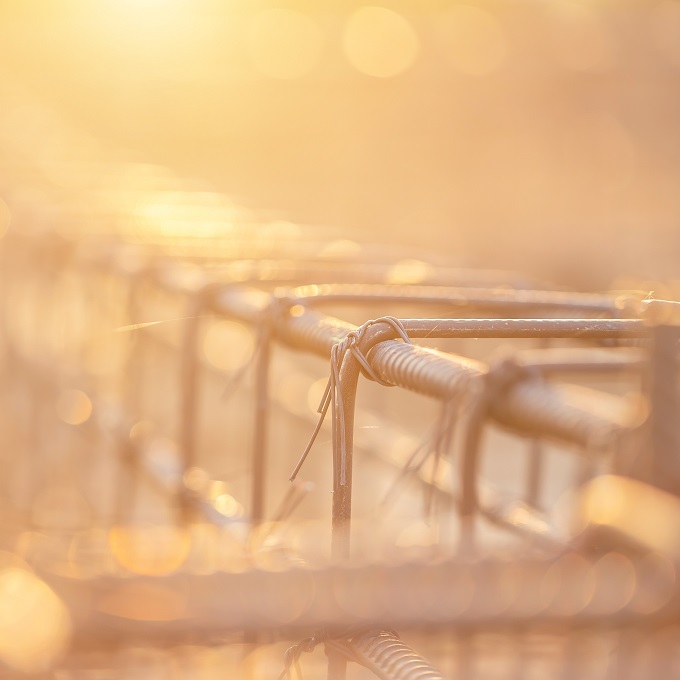 鉄筋を布設したあと、アンカーボルトを設置し、架台を固定して強度を維持します。コンクリートを打設して一定の養生期間を置き、型枠を脱型。基礎コンクリートの完成です。
