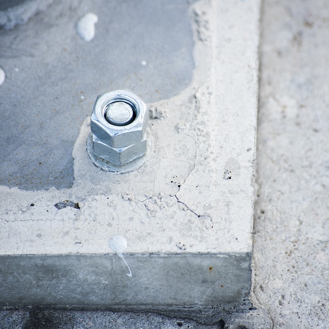 基礎コンクリートの上に架台を設置し、ナットでしっかりと固定して、架台の設置完了です。