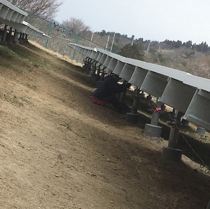 傾斜地が多いので躓かないよう安全面に留意しつつ、パネルを並べるときにズレが生じてあとからやり直しにならないよう効率良い作業を心がけています。